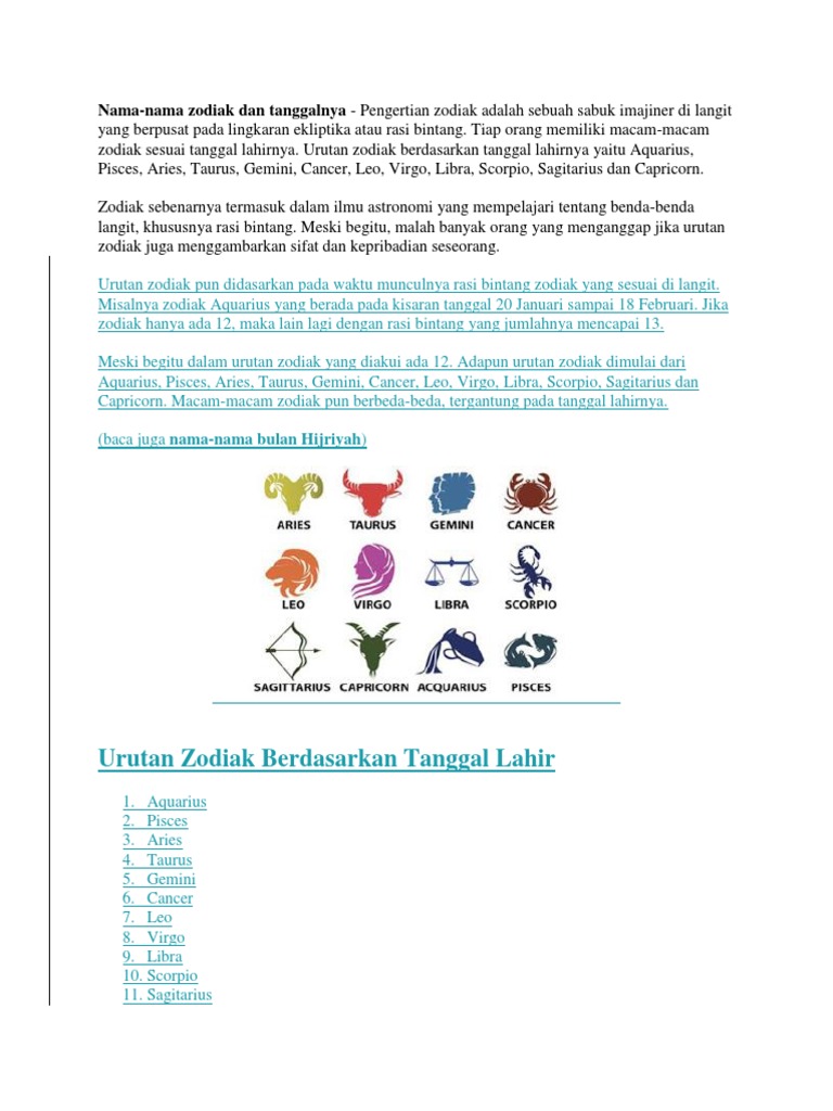 Uncategorized Urutan Zodiak Berdasarkan Tanggal Lahir Misalnya zodiak aquarius yang berada pada kisaran tanggal 20 januari sampai 18 februari Urutan zodiak paling beruntung dan kurang beruntung di 2020